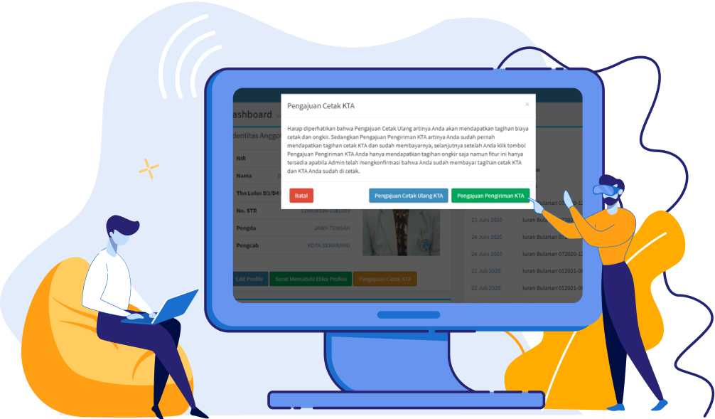 Harap di perhatikan bahwa Anda tidak bisa lanjut ke langkah selanjutnya apabila Admin belum mengkonfirmasi bahwa Anda sudah pernah membayar tagihan cetak KTA dan KTA Anda sudah di cetak. Anda bisa cek di http://ppnipidiekab.org/kta-tercetak.
